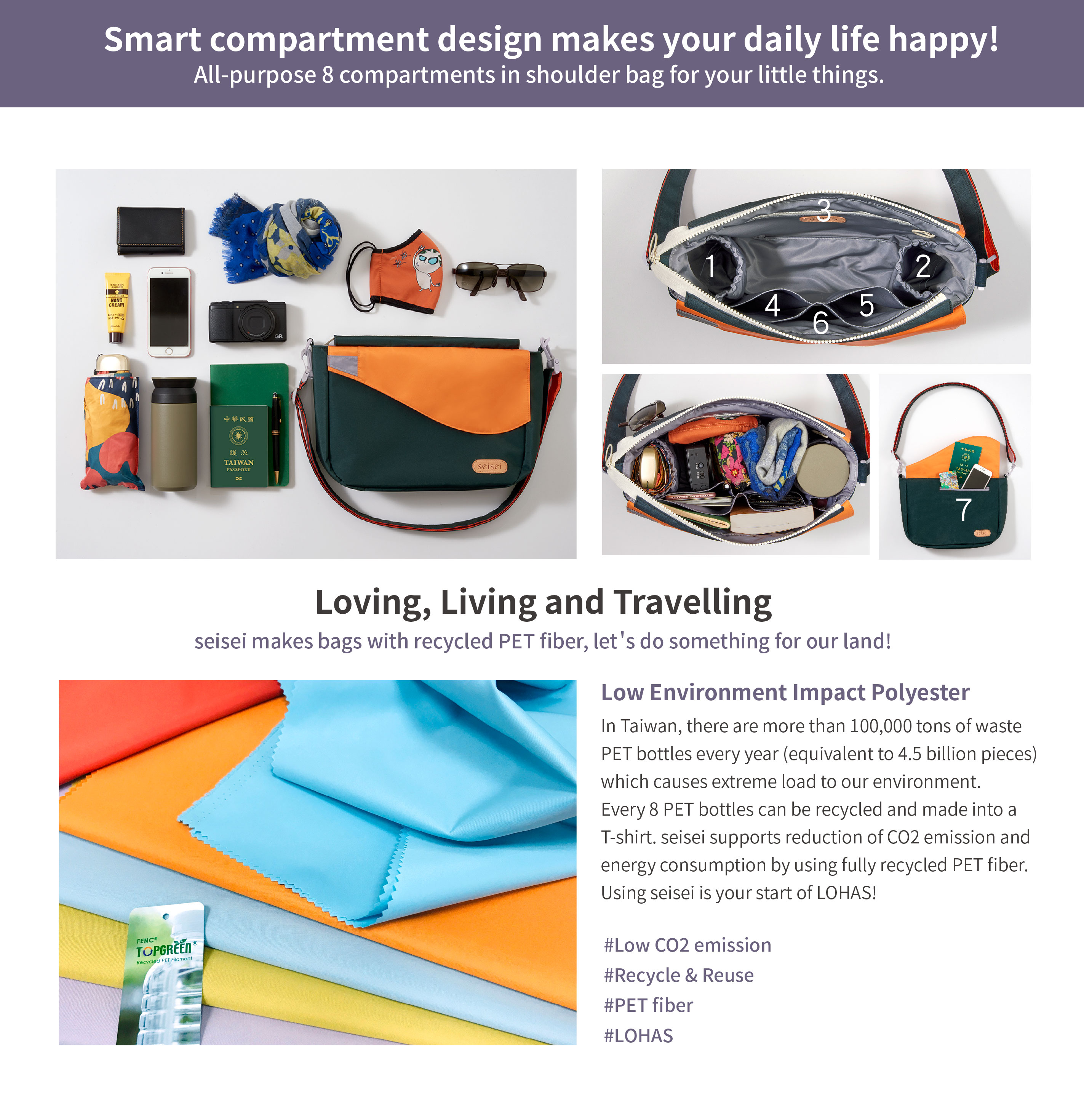 yoyo bag is designed for all-time daily use, light in weight, colorful, stylish, practical, fully functional, and environmentally friendly. All-purpose 8 compartments in a shoulder bag to keep your essentials organized.