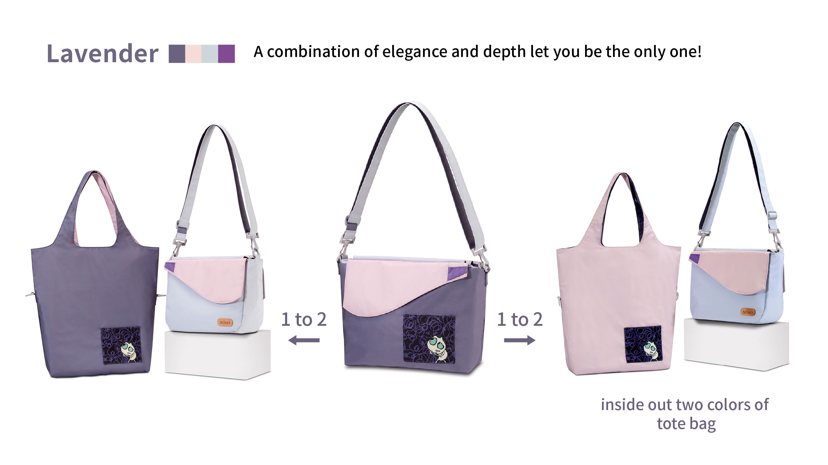 • Detachable 2 in 1 Crossbody & Shoulder tote bag (Lavender)